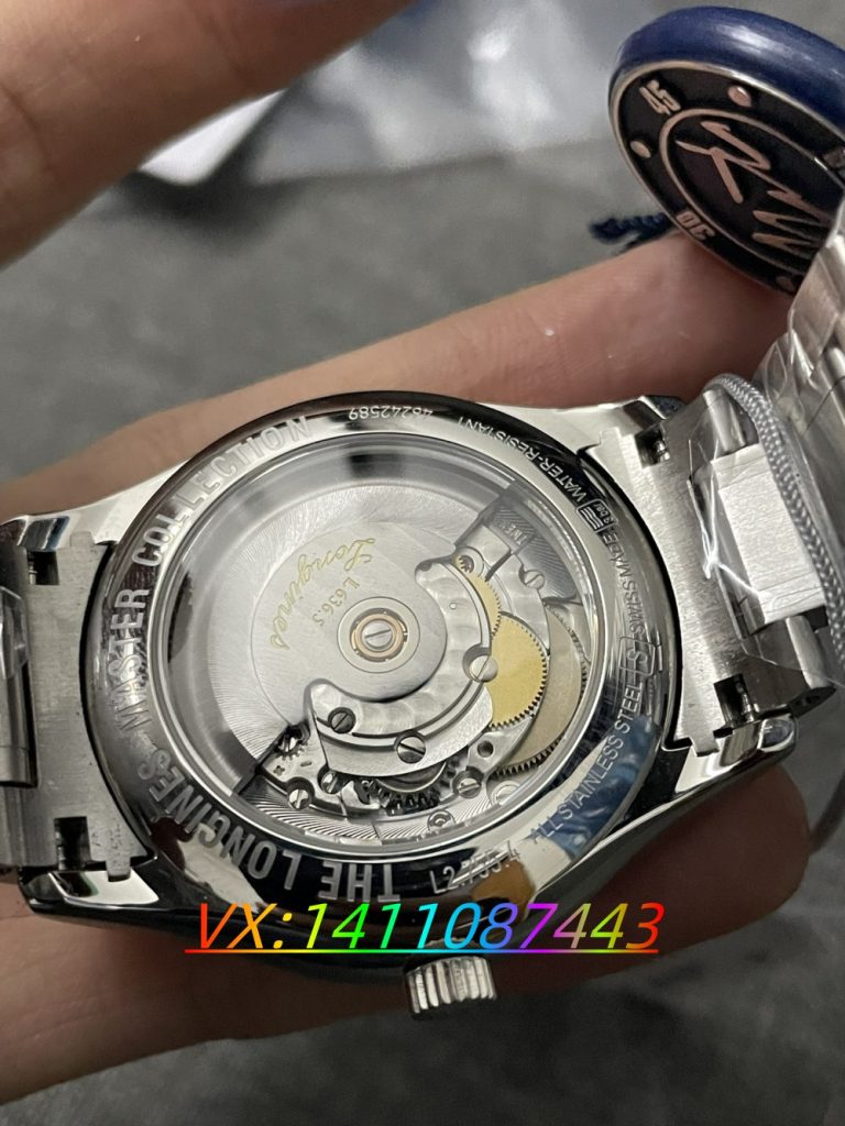 2. 制作工藝與材料:KY 廠浪琴名匠雖采用復刻表常見制作方式,但部分工藝可圈可點。表盤刻度與指針打磨拋光精細,表殼與表帶不銹鋼材質質感也接近正品。不過,與正品相比,KY 廠浪琴名匠在細節處仍存差距,尤其是機芯打磨拋光質量,正品的精細程度是 KY 廠難以企及的。